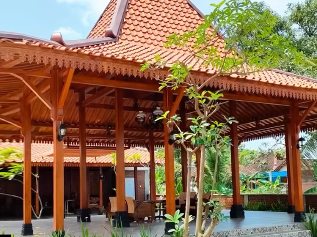 Pendopo megah dengan full ukiran jati halus dan mendetail pada tiang, balok, dan plafon—menampilkan kemewahan dan keindahan budaya Jawa dalam satu kesatuan estetika. Dikerjakan oleh pengrajin ukir profesional dari daerah pusat ukiran terbaik di Jawa Timur.